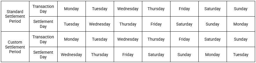 Please note there are 11 public holidays that will affect the settlement day and will likely make it a day later to your normal settlement day (regional public holidays are excluded and will settle as per your normal time).